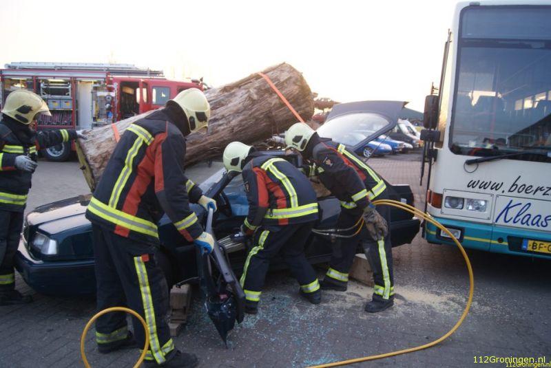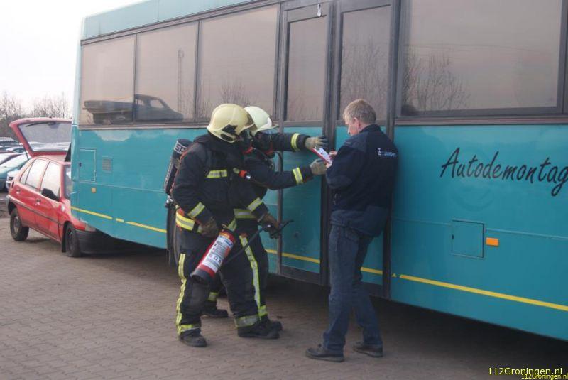 Autodemontagebedrijf Klaas Boer in Uithuizen levert al enkele jaren diverse oefen objecten, aan de diverse brandweer korpsen in de regio. Zo werd er dit keer geoefend met een touringcar bus.