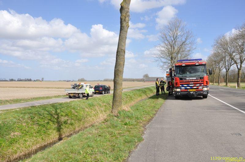 Hij kwam in een ondiepe sloot terecht. Omstanders hielpen de man uit het water. Hij werd nagekeken door ambulancepersoneel en mankeerde verder niets en kon naar huis worden gebracht.
