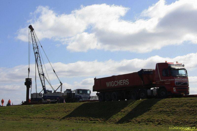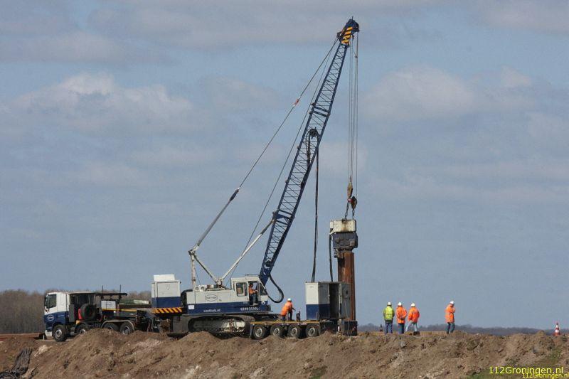Bij Veendam werd er door de firma F.C. Nienhuis hard gewerkt om de geleiderail te plaatsen. Een stuk verderop t.h.v. Gieterveen werden door de firma Van ‘t Hek damwanden ingetrild.