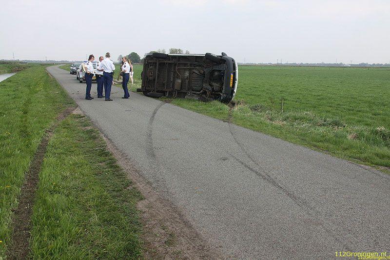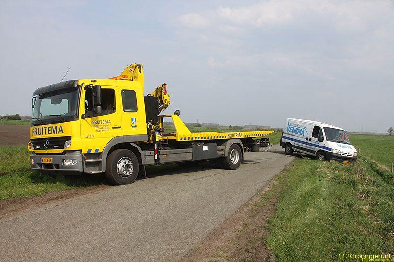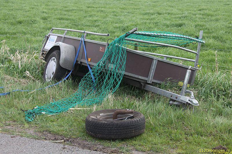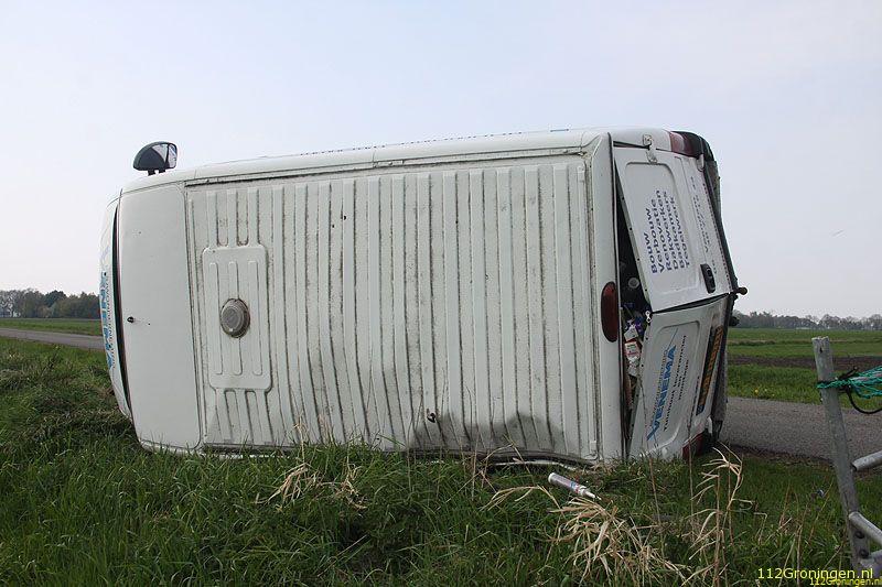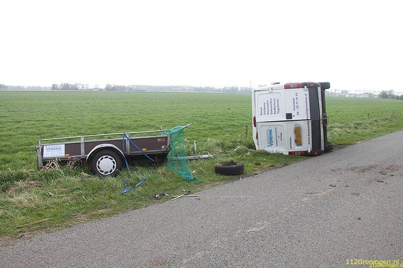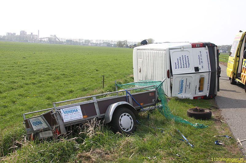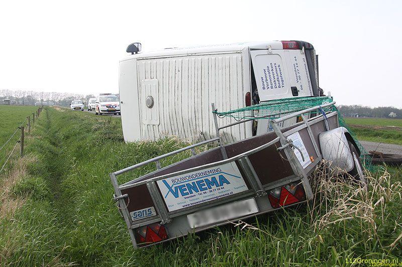 De man reed in zijn bestelauto met daarachter een aanhangwagen over de Noorderweg in Veendam. Door nog onbekende oorzaak verloor hij de macht over het stuur. De auto met aanhanger schaarden en het geheel kwam op de zijkant in een sloot tot stilstand.