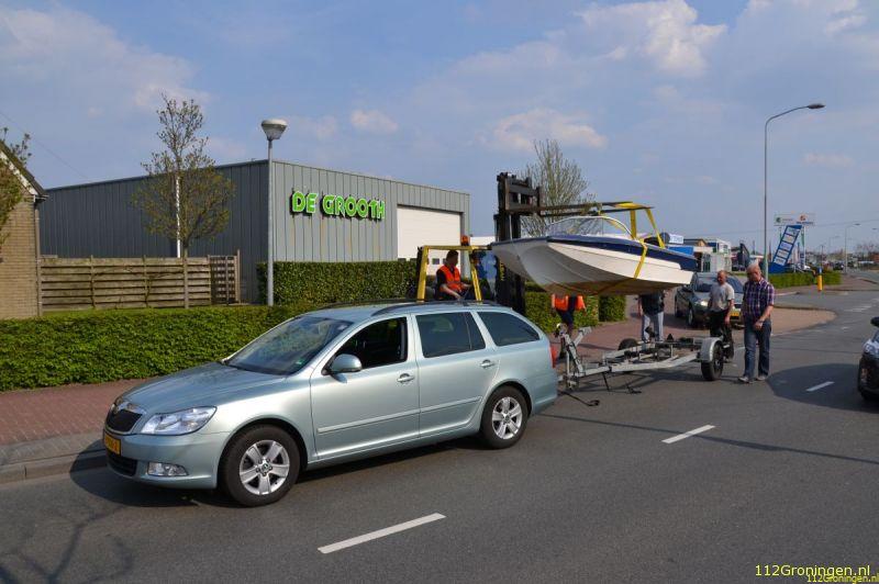 Doordat de boot niet vast zat kwamen er in de bocht teveel krachten op de boot zodat hij van de trailer gleed. De rechter achterkant van de boot heeft flinke schade op gelopen. Met behulp van een heftruck is de boot weer op de trailer gezet en kon de bestuurder zijn weg vervolgen.