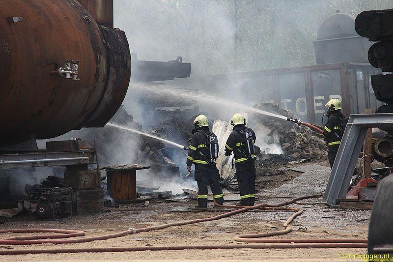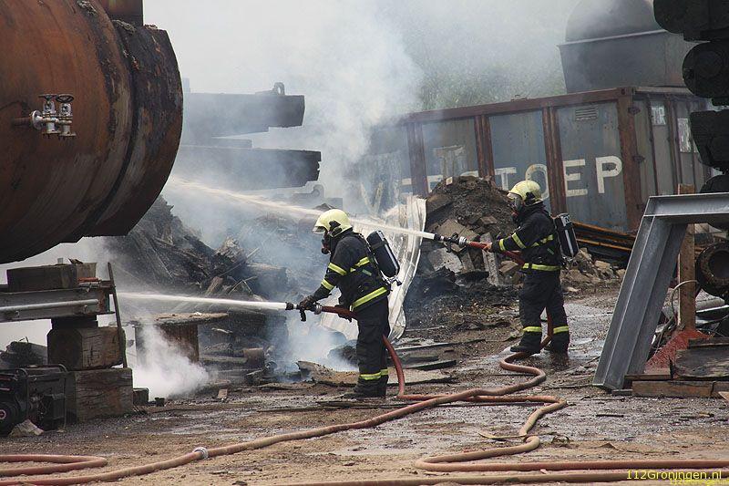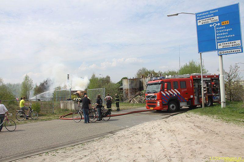 Muntendam - Op dinsdagmiddag 7 mei omstreeks 13.15 uur is de brandweer van Veendam opgeroepen voor een brand op het terrein van Remmers Expeditie in Muntendam. De brand werd ontdekt door toevallig passerende politieagenten.