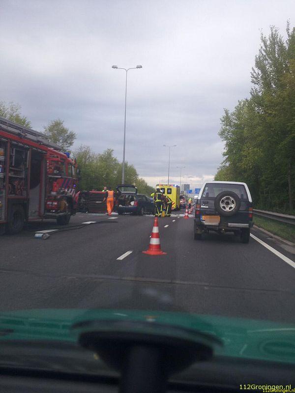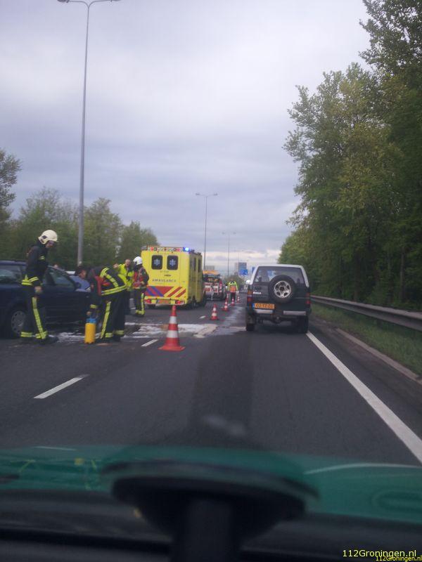 Ze is per ambulance naar het Martiniziekenhuis gebracht. Voor de afhandeling van het ongeval is een rijstrook afgesloten, waardoor het verkeer de nodige vertraging heeft opgelopen.
