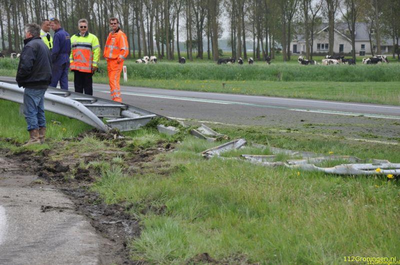 Het gras kwam op de N33 te liggen. De aanhanger met tractor reed op de parallelweg en de aanhanger raakte door onbekende oorzaak in onbalans en sloeg om. Door de bergingswerkzaamheden en het opruimen met het gras werd de N33 afgesloten.