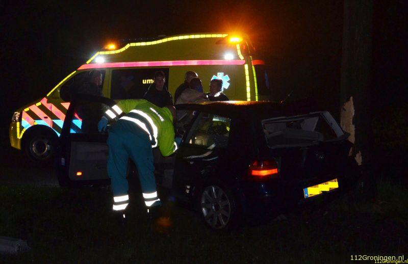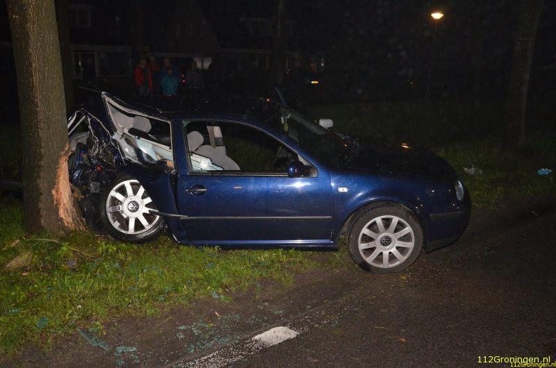 De 20-jarige bestuur uit Leek raakte daar door nog onbekende oorzaak de controle over de auto kwijt en raakte naast de weg. Via een lantaarnpaal kwam de auto tot stilstand tegen een boom. De bestuurder en een 21-jarige man uit Leek die bij hem in de auto zat werden naar het Martiniziekenhuis gebracht.