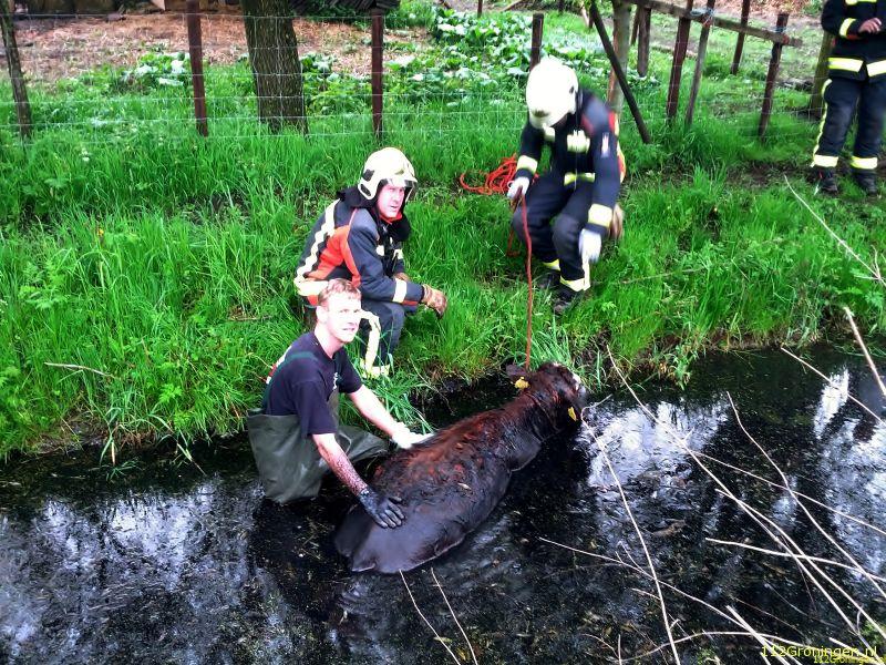 Bad Nieuweschans - Vrijdagmorgen om 08:10 uur was er op de Hamdijk in Bad Nieuweschans een koe te water geraakt.