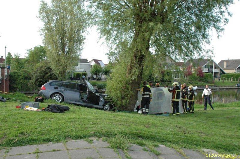 In de auto zat ook een vrouw. Zij kon zelf uit de auto en het water komen. De man zat nog in de gordels.