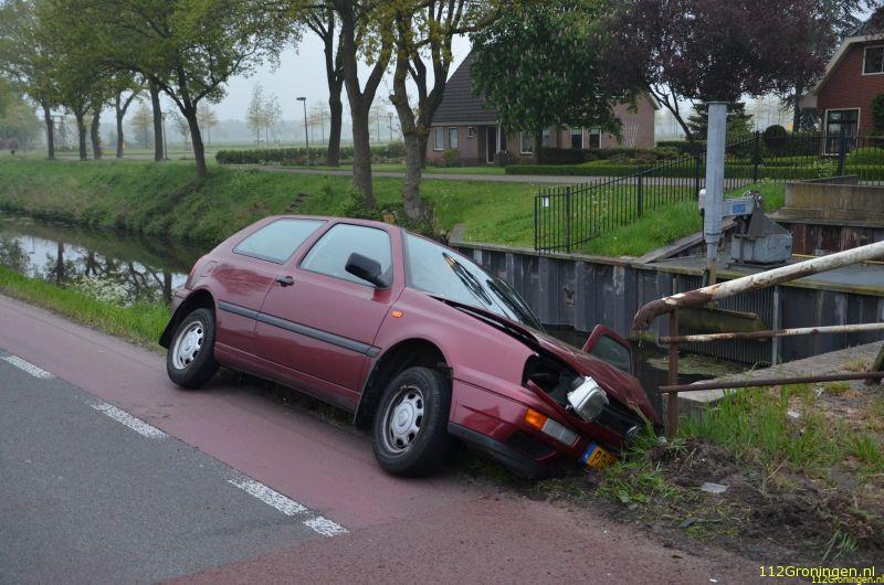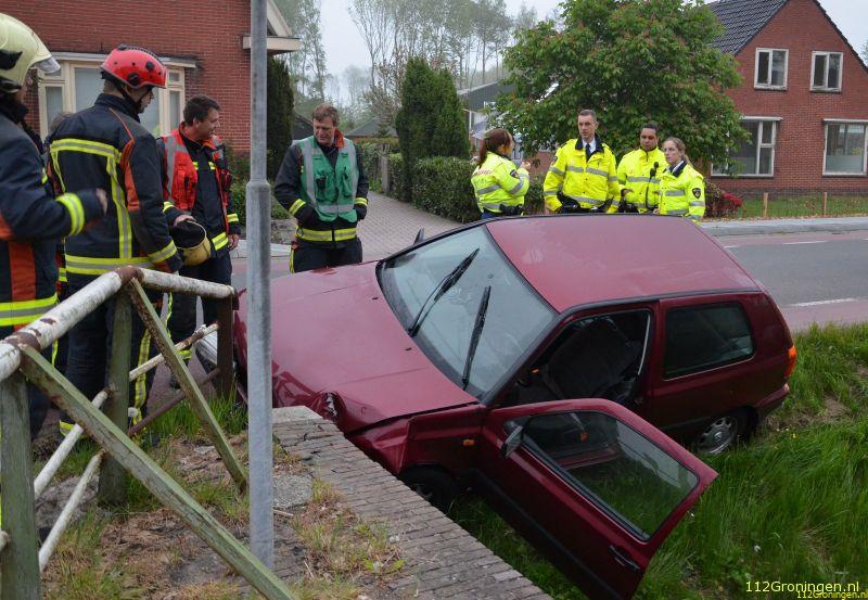 Agenten troffen de auto aan in de wal, met de voorkant tegen de zijkant van de brug bij de sluis. De auto was door de botsing zwaar beschadigd, het portier stond open en er was niemand meer bij aanwezig. Iets verderop liep een man hard weg.