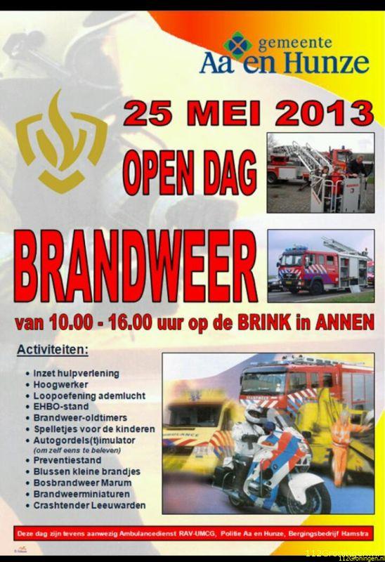 Binnen de brandweer Aa en Hunze is momenteel weer behoefte aan de instroom van enkele jonge enthousiaste vrijwilligers. Indien je hiervoor belangstelling hebt, kun je op deze dag informatie inwinnen of je aanmelden bij de informatiestand van de gemeente Aa en Hunze.