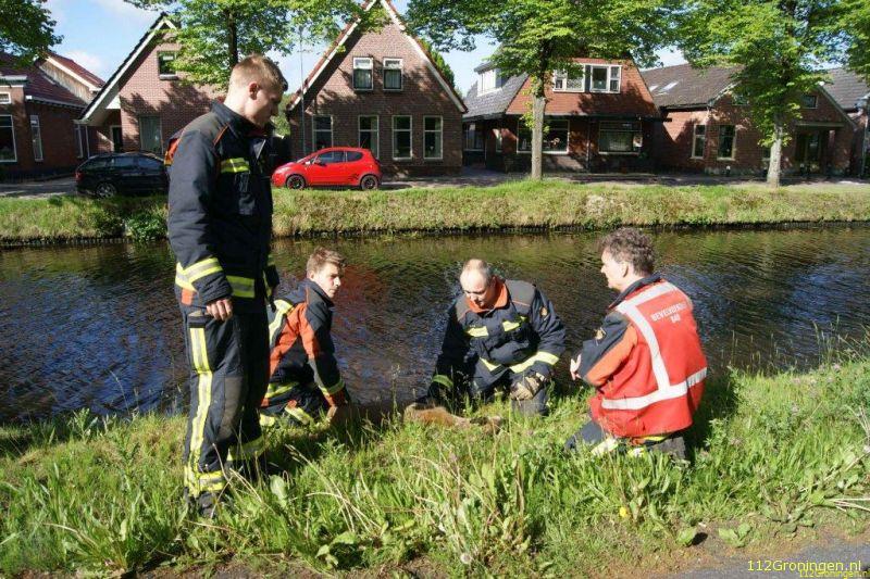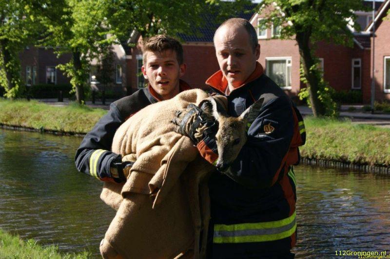Stadskanaal - De brandweer van Stadskanaal kreeg zondagochtend een melding van een ree/hert te water aan de Poststraat in Stadskanaal.