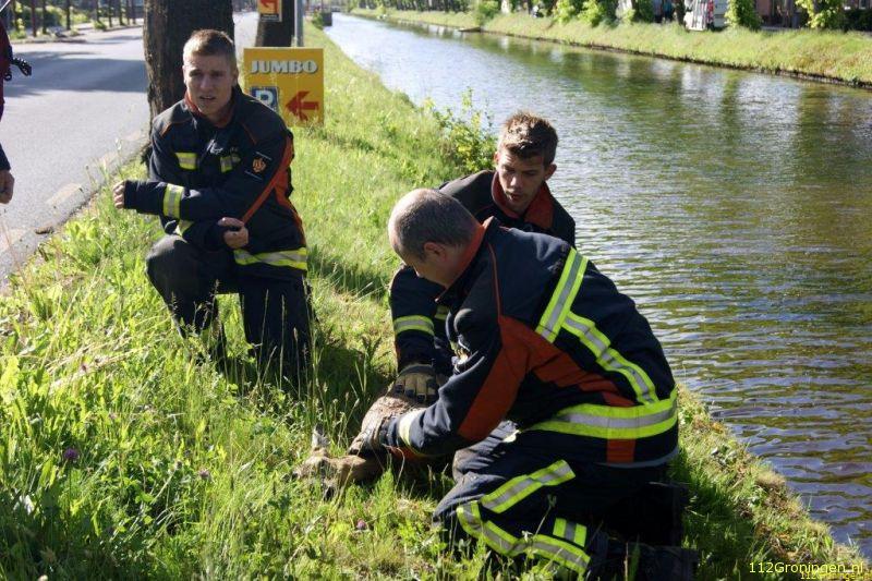 Een fietser zag het diertje zwemmen in Het Stadskanaal en waarschuwde de brandweer. Deze kwam ter plaatse met een tankautospuit en een boot. Éénmaal ter plaatse werd de brandweer opgevangen door de melder. Het diertje kon niet zelfstandig meer uit het water komen en was uitgeput. Daarnaast heeft het diertje veel water binnengekregen.