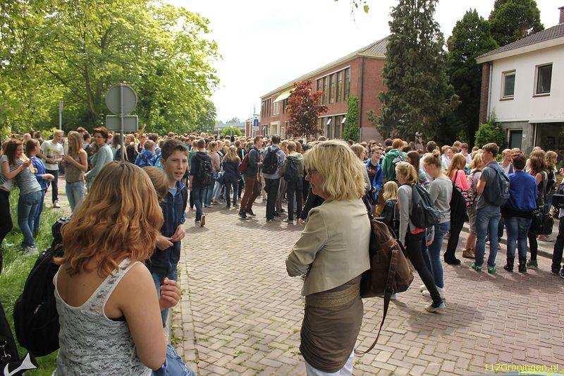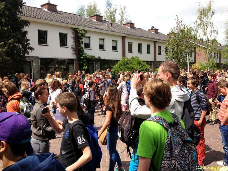 Door nog onbekende oorzaak is de kast in de brand gevlogen. Uit voorzorg is de school ontruimd en hebben de leerlingen zich verzameld op het grasveld voor de school.