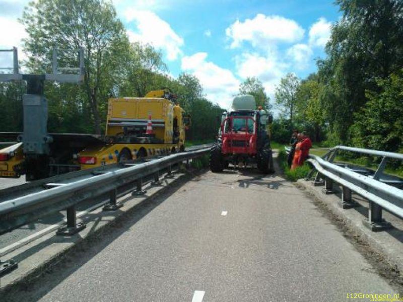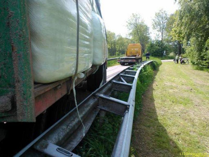 De chauffeur reed op de secundaire weg langs de N361, richting Mensingeweer, toen het mis ging. Hij naderde nl een brug die smaller was dan de weg,waardoor hij plotseling moest remmen. Door het gewicht van de aanhanger schaarde de combinatie, en kwam de trekker over dwars vast te zitten tussen de vangrails.