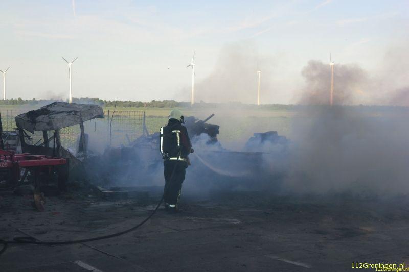 Ter plaatse bleek het achter een opslag schuur te zijn waar aardappellen en andere vervoersmiddelen in stonden een brand te zijn. Een buurtbewoner zag rook achter de schuur komen en heeft dan ook meteen de brandweer gebeld. Na ruim een uur was het brand dan ook uit. De oorzaak is onbekend.