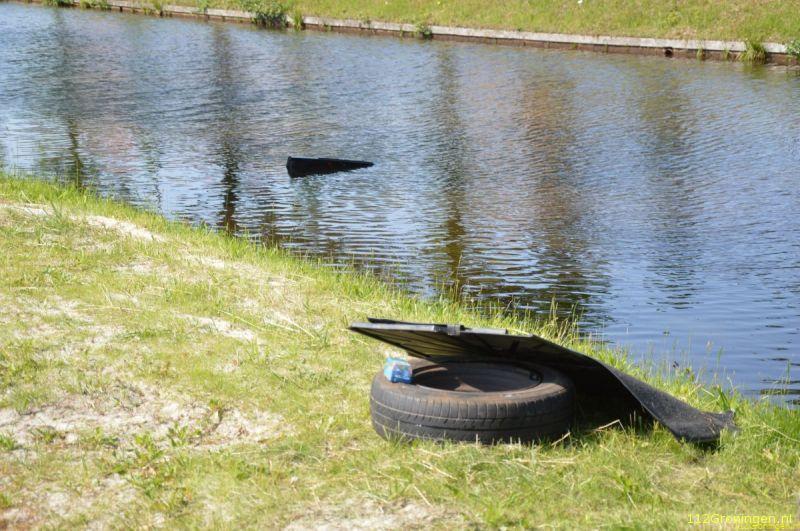 Stadskanaal - Vrijdagmiddag is aan de Scheepswerfkade in Stadskanaal een Mercedes in het water gerold.