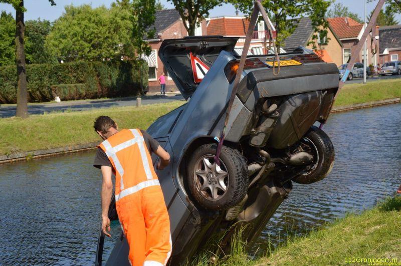 De Mercedes uit 1984 had de bestuurster haastig naast het kanaal geparkeerd en vergeten de handrem aan te trekken. Terwijl de vrouw in de winkel was kreeg zij te horen dat haar auto in het kanaal dreef. Niemand is bij het ongeval gewond geraakt. Bergingsbedrijf Keizer heeft de auto uit het water gehaald en geborgen.