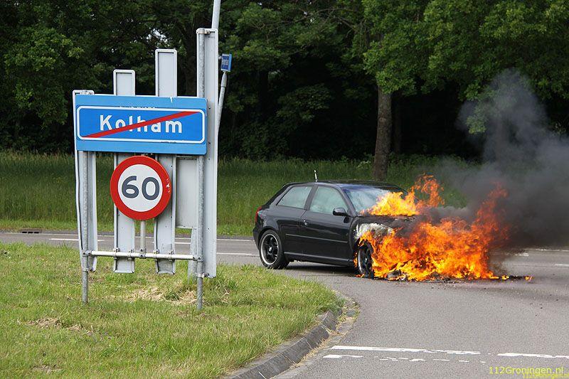 Kolham - Op de Rengerslaan in Kolham is zondag aan het eind van de middag een auto voor een groot deel uitgebrand.
