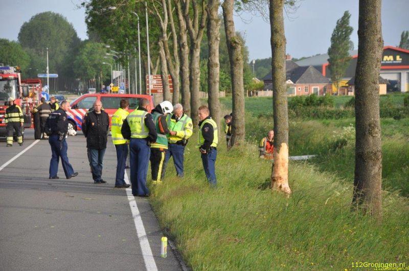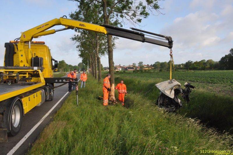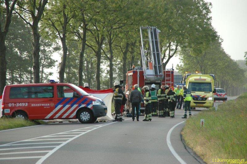 Het tweetal, afkomstig uit Wehe den Hoorn en Groningen, zat in een auto die rond vijf uur door onbekende oorzaak met hoge snelheid in een slip raakte en tegen een boom botste. De twee inzittenden werden uit de wagen geslingerd en waren op slag dood. De wagen met waarschijnlijk de 22-jarige inwoner van Groningen achter het stuur kwam uit de richting Winsum. Ter hoogte van Wehe den Hoorn belandde de auto door nog onbekende reden op de verkeerde weghelft, raakte in een dwarsslip en botste aan de rechterkant van de weg op een boom.