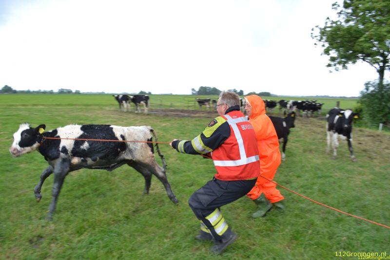 Bedum - Zondagmiddag 16 juni rond de klok van 11:00 uur kreeg de Bedummer brandweer een melding van een dier te water aan de warffumerweg te Onderdendam.