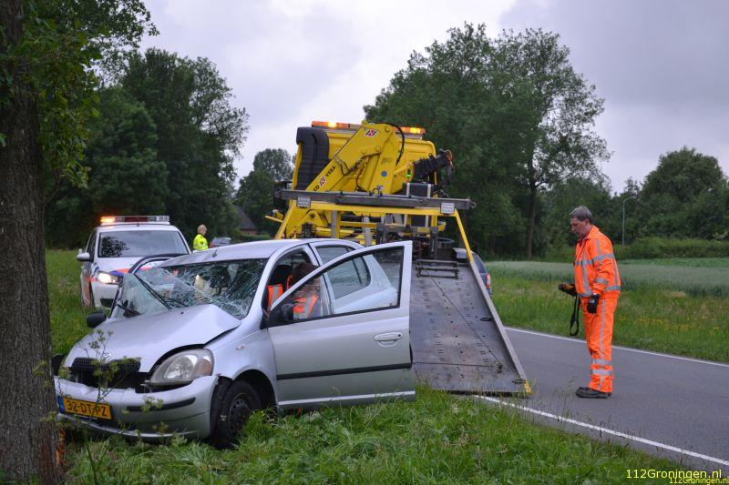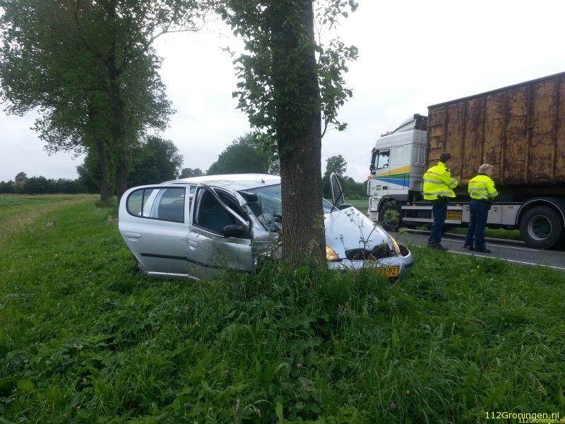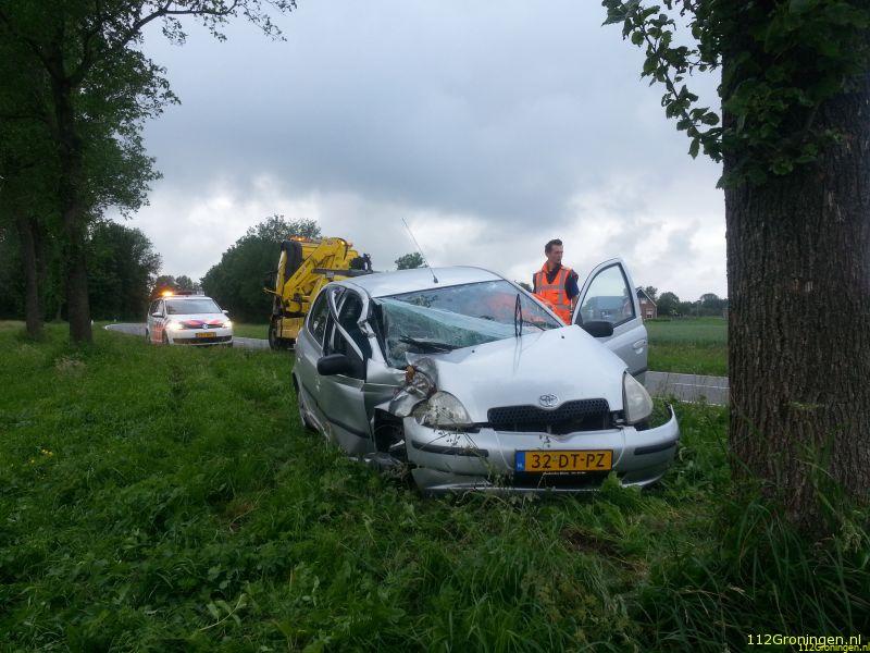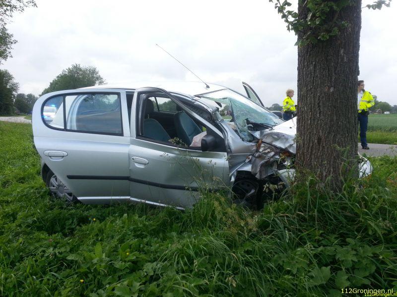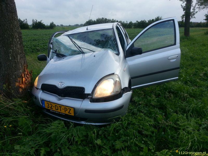 Uithuizermeeden - Aan de hooilandseweg bij Uithuizermeeden is maandagavond een auto tegen een boom gereden.