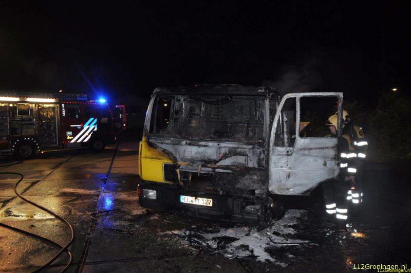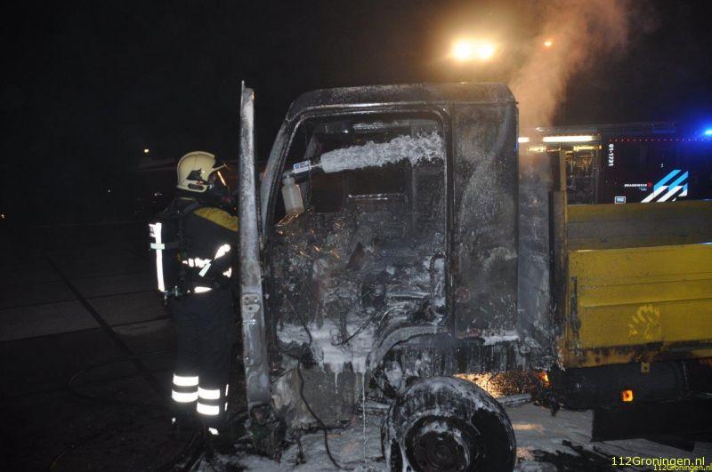 Ter plaatse bleek de cabine van een Duitse vrachtwagen volledig te branden, Buurtbewoners denken aan brandstichting, er stopte wat en ineens steekvlammen aldus een omstander. Er was geen redden meer aan. De schuimbluswagen(SB) van de stad keerde bij Garmerwolde al om.