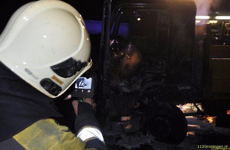 Ten Boer - Maandagavond om 23:25 uur werd er een vrachtwagenbrand gemeld op de Bedrijvenweg in Ten Boer.