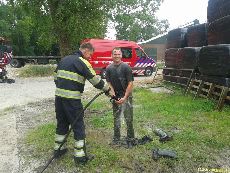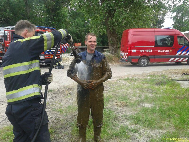 De boer en de koe hebben na die tijd een frisse douche gekregen van de brandweer.