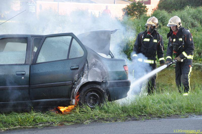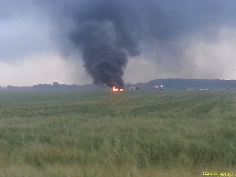Finsterwolde - Bij een brand midden op een weiland is een trekker volledig verwoest. De brandweer van Finsterwolde en Woldendorp zijn lange tijd bezig geweest met het blussen en nablussen van de brandende trekker.