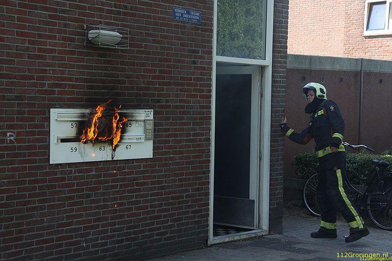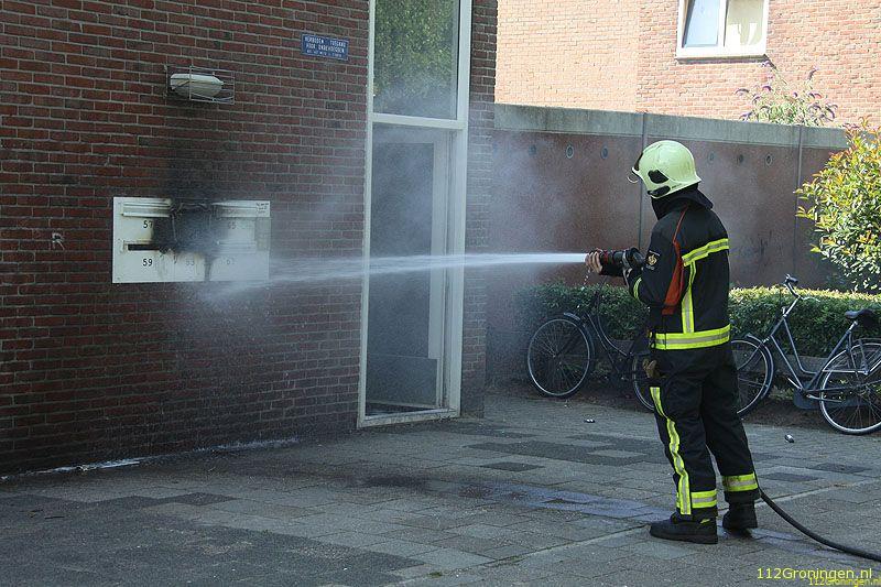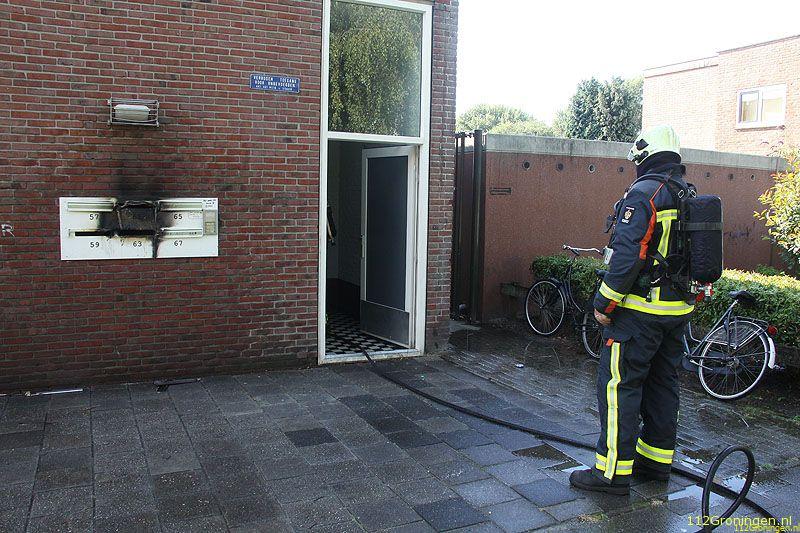Een voorbijganger die langs liep zag rook uit de brievenbussen komen en waarschuwde de brandweer. De brandweer had het vuur snel onder controle.