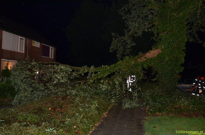 Leek/ Warffum - Nadat de hevige onweersbui en storm over Leek getrokken was, werd ook de brandweer van Leek maandagavond tegen 23 uur opgeroepen voor een omgewaaide boom aan de Richterenlaan in Leek.