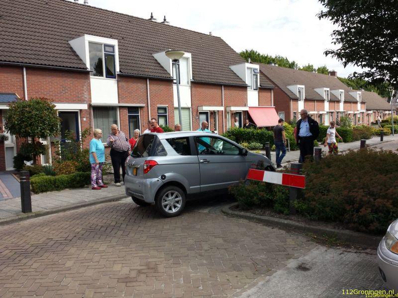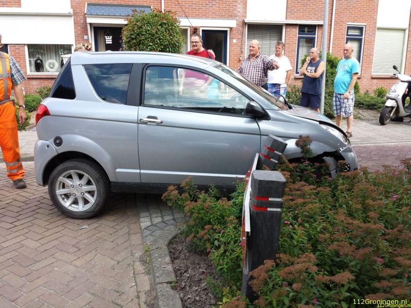 Een bestuurder van een 45-km wagentje is door nog onbekende oorzaak tegen een wegversmalling aangereden. De vrouw die ook in de auto zat kon het voertuig na het ongeval direct verlaten, allen door de klap was het portier van de bestuurder vast komen te zitten. Omstanders slaagden er na een aantal keer ook niet in om het portier open te krijgen. De brandweer die ook was opgeroepen voor het ongeval slaagde er wel in om het portier open te trekken. De bestuurder is in de ambulance gecontroleerd, maar hoefde niet naar het ziekenhuis.