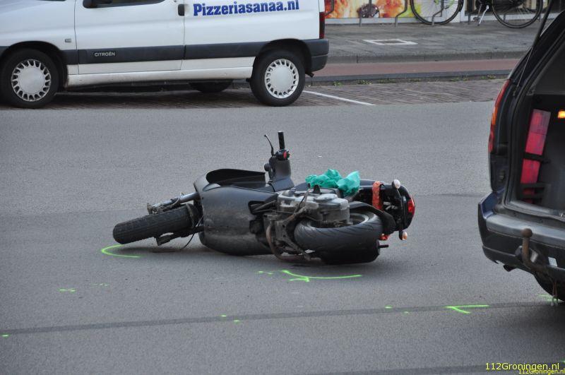 Groningen - Zondagavond om 19:15 uur was er een ongeval op de Zonnelaan in de wijk Paddepoel. Ter plaatse bleek een scooterrijder tegen de zijkant van een auto te zijn gebotst. De scooter gaf geen voorrang aan de automobilist.