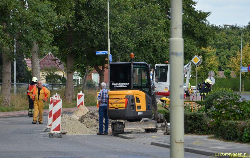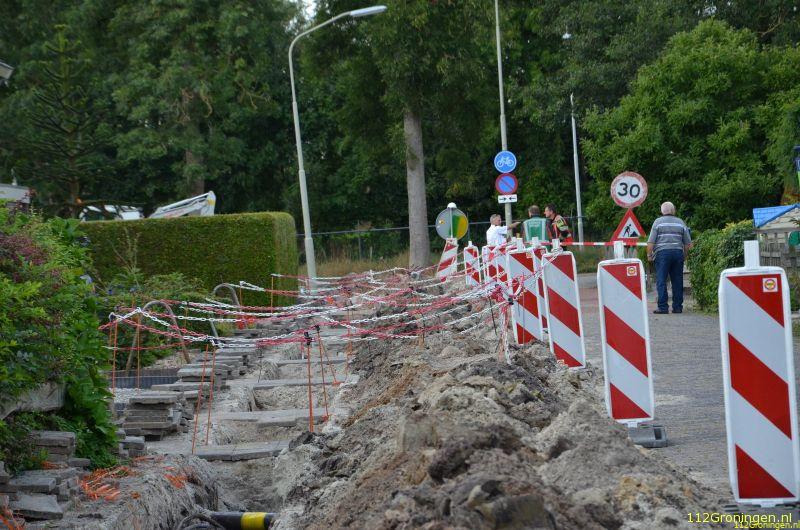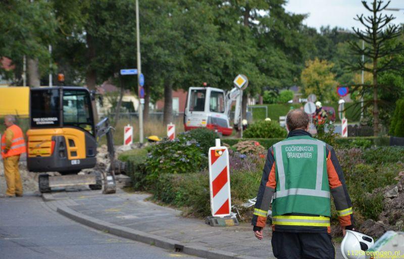Tolbert - Aan de Oldebertweg thv de ijsbaan in Tolbert is woensdagmorgen door het aanleggen van een elekticiteiskabel van Enexis een gaslekkage ontstaan.