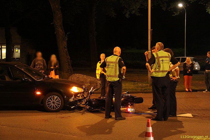 Een 27-jarige man uit Assen reed op de Meint Veningastraat in de richting van de Horstlaan. Deze bestuurder sloeg op een bepaald moment linksaf en botste tegen de motorrijder die uit tegengestelde richting kwam. De motorrijder raakte gewond aan zijn gezicht en knie.