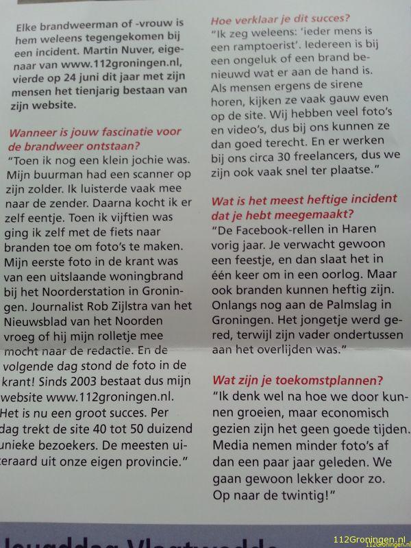 Toen ik nog een klein jochie was. Mijn buurman had een scanner op zijn zolder. Ik luisterde vaak mee naar de zender. Daarna kocht ik er zelf eentje. Toen ik vijftien was ging ik zelf met de fiets naar branden toe om foto’s te maken. Mijn eerste foto in de krant was van een uitslaande woningbrand bij het Noorderstation in Groningen. Journalist Rob Zijlstra van het Nieuwsblad van het Noorden vroeg of hij mijn rolletje mee mocht naar de redactie. En de volgende dag stond de foto in de krant! Sinds 2003 bestaat dus mijn website www.112groningen.nl. Het is nu een groot succes. Per dag trekt de site 40 tot 50 duizend unieke bezoekers. De meesten uiteraard uit onze eigen provincie.