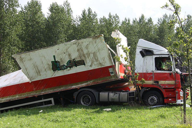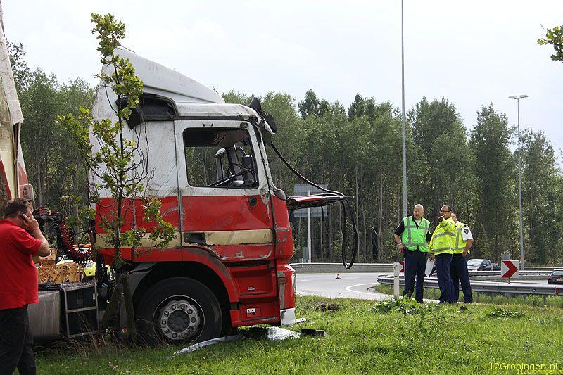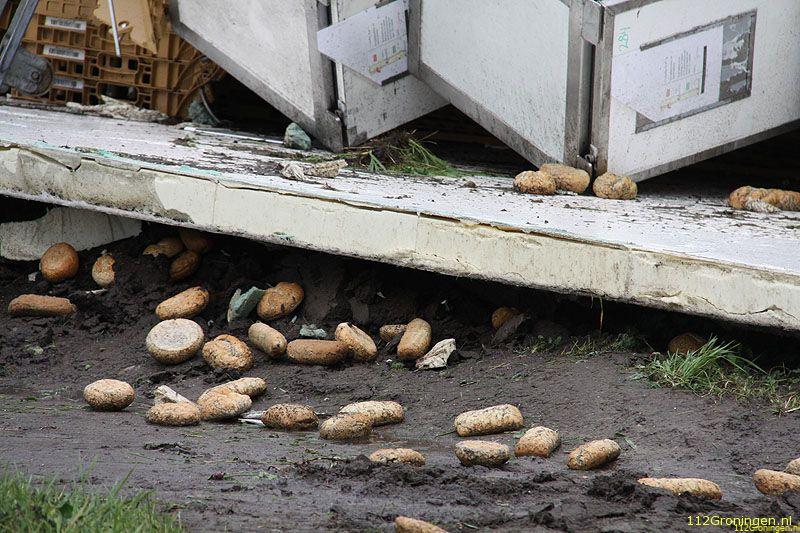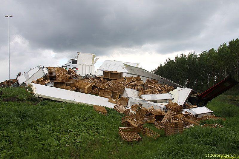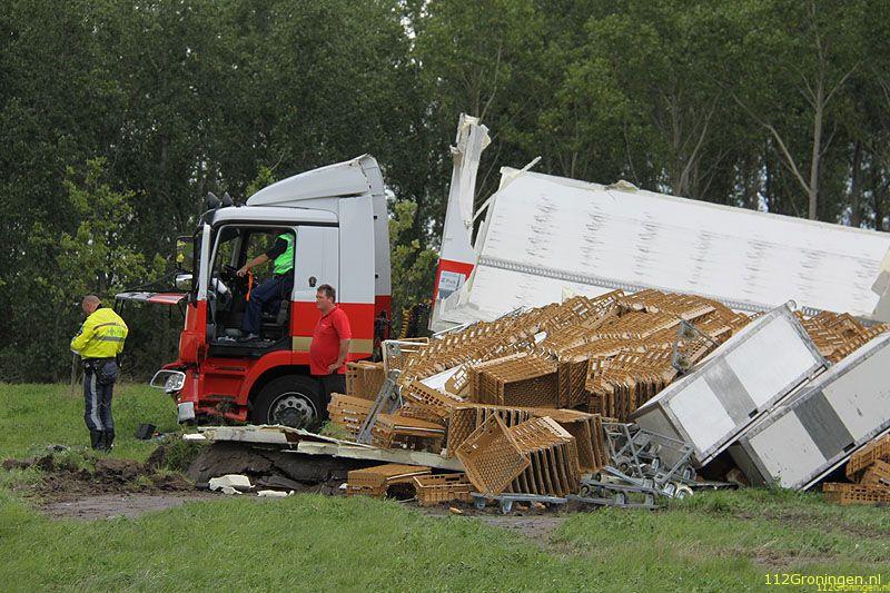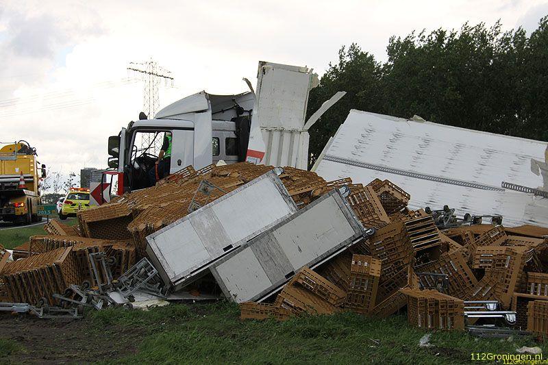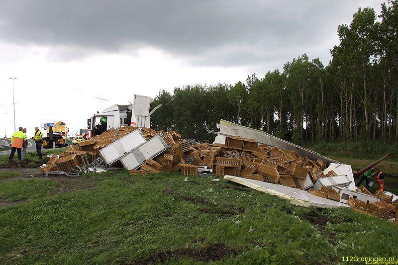 De chauffeur heeft vermoedelijk de bocht te hard genomen waardoor de combinatie is gekanteld en de inhoud van de trailer in de berm terecht is gekomen. De man is door medewerkers van de ambulancedienst onderzocht, of hij uiteindelijk nog naar het ziekenhuis is gebracht is niet bekend. De vrachtwagen kwam na het ongeval met alle wielen weer op de grond en moest door een bergingsbedrijf uit de berm worden getrokken. De broodkratten zijn door een andere vrachtwagen opgehaald.