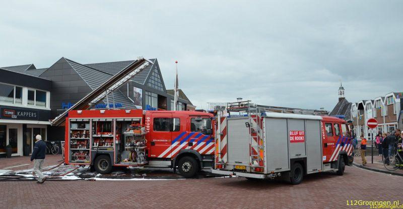 Leek - Dinsdagmiddag rond half 2 werd de Leekster brandweer opgeroepen voor een brand in een schoenenwinkel aan de Dam in Leek.