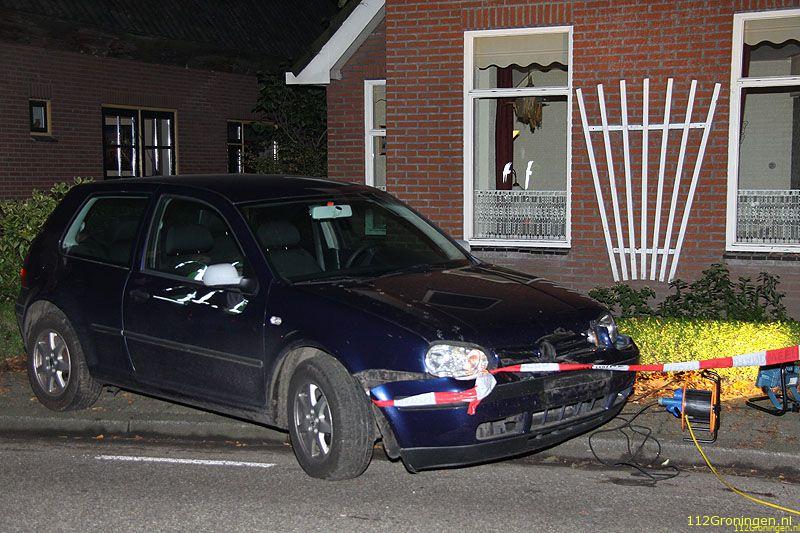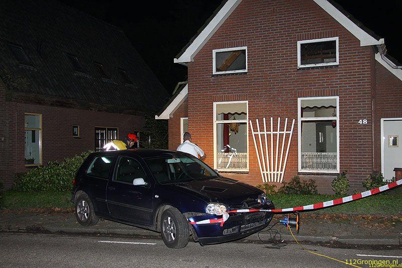 De automobilist verloor door een nog onbekende oorzaak de macht over het stuur en botste tegen de gevel van een woning. De hulpdiensten waren massaal aanwezig, maar de schade aan de woning viel erg mee. De bestuurder kwam met de schrik vrij. De auto is door een bergingsbedrijf afgevoerd.