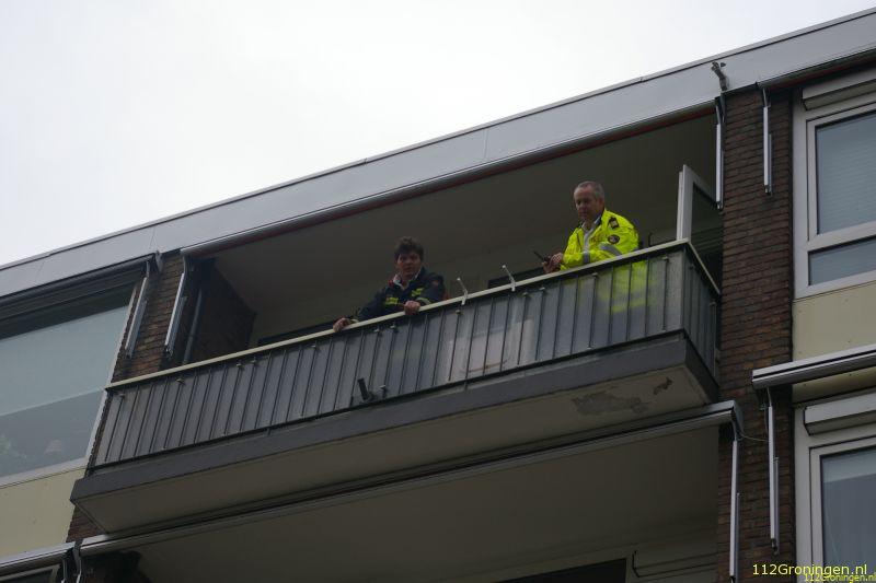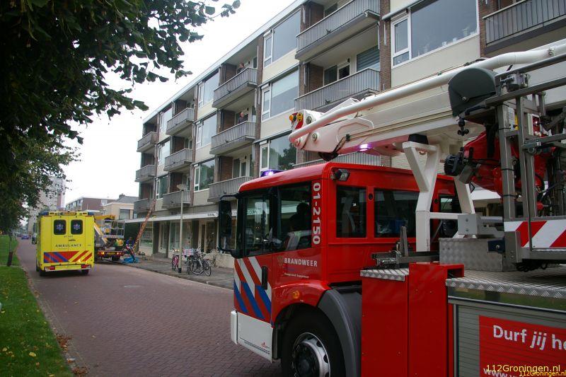 Direct bij aankomst is geprobeerd om de hoogwerker in stelling te brengen om de vrouw uit de woning te halen maar dit lukte echter niet door een storing. Daarna is direct de hoogwerker van de stad Groningen gealarmeerd maar die hoefde echter niet in actie te komen.