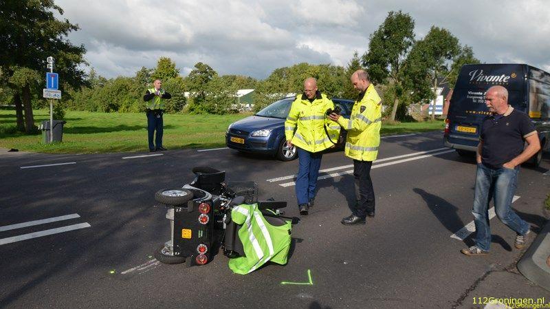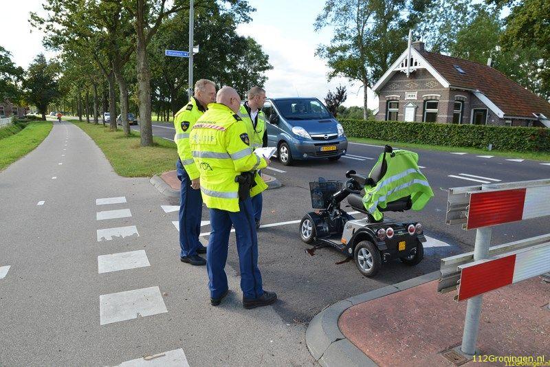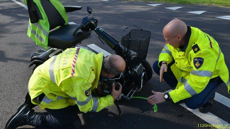 De verkeersongevallen analyse dienst bracht het ongeval in kaart en de scootmobiel werd met een politiebusje overgebracht na het bureau.