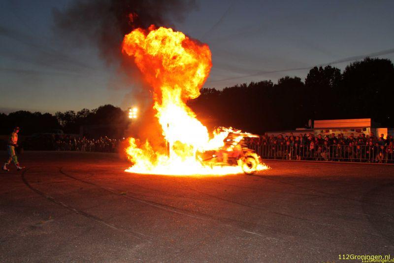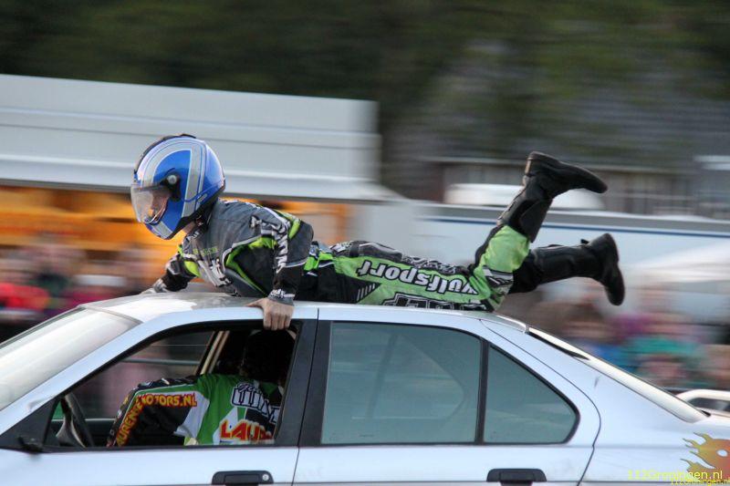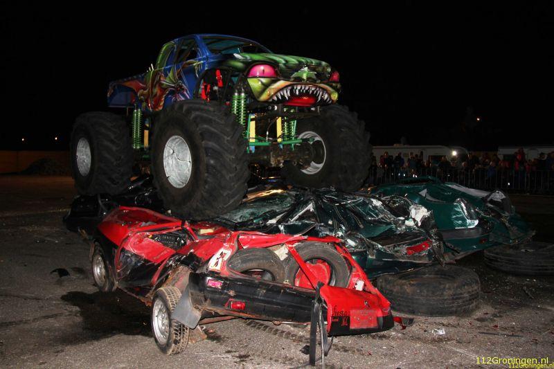 Het publiek werd getrakteerd op motoren met lange en hoge sprongen en natuurlijk spectaculaire stunts met auto’s zoals de multiple rollover en frontale crashes. Aan het einde van de show kwamen de Monster-Trucks met hun gigantisch grote banden. Ze verpletterden met hun 1200 pk de sloopauto’s alsof het speelgoedauto’s zijn.