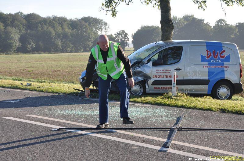 Door nog onbekende oorzaak botste een bestelauto achterop een bedrijfsbus. Hulpdiensten waaronder de brandweer van Zoutkamp, twee ambulances en de politie kwamen met spoed ter plaatse. De bestuurder van de bestelauto is met onbekend letsel overgebracht naar het ziekenhuis. De inzittenden van de bedrijfsbus werden ter plaatse in de ambulance onderzocht, en konden daarna huiswaarts keren.
