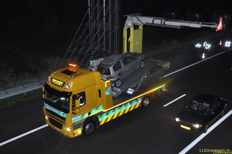 Twee auto`s werden door de nieuwe bergingsvoertuig van Poort afgesleept. Wat er precies gebeurde is nog onduidelijk. Er waren wegwerkzaamheden ten tijde van het ongeluk.