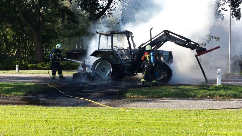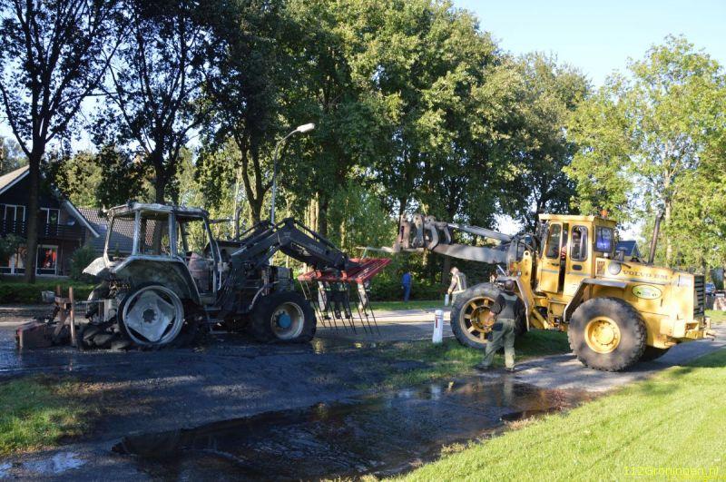 De bestuurder van de tractor hoorde een harde knal en toen hij uitstapte kwam er een steekvlam onder vandaan. Het duurde maar even voordat de tractor volledig in brand stond en de rookwolken in de weide omgeving te zien waren. De brandweer had de brand snel onder controle, maar kon niet meer voorkomen dat het volledige voertuig afbrandde.