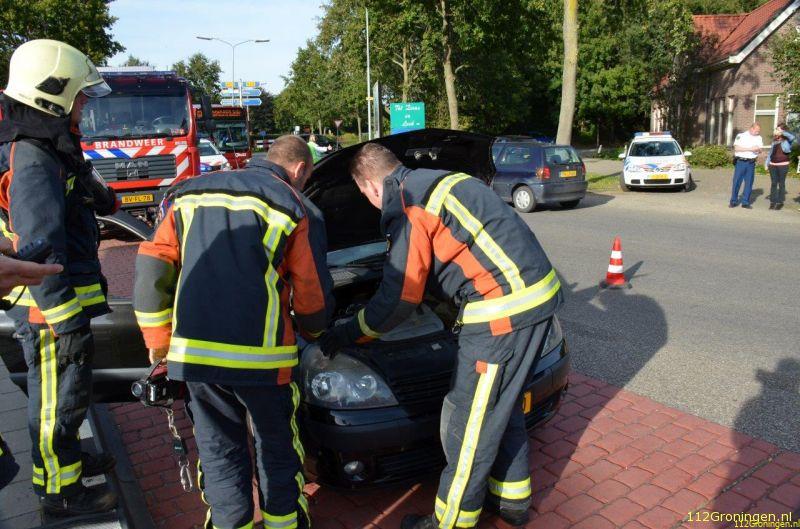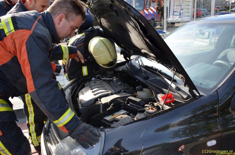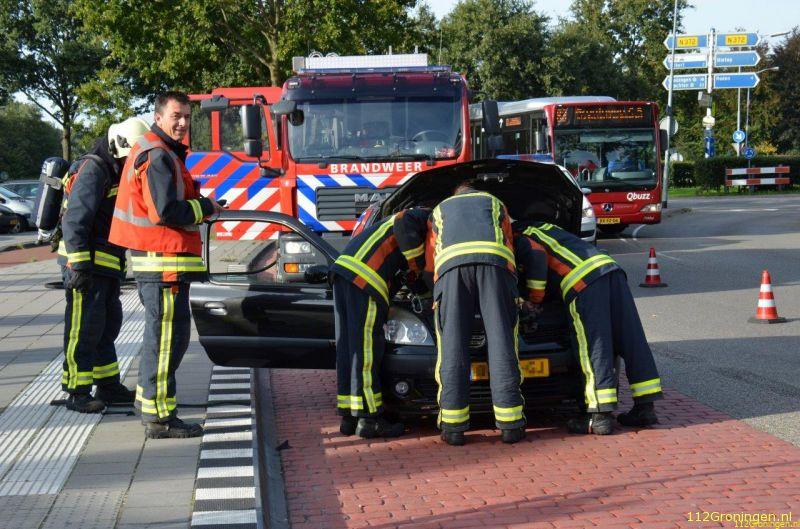 Nadat de bestuurder en bijrijder komende uit Groningen in Leek een brandende lucht in de auto roken hebben ze hem stilgezet en de brandweer gebeld. Ter plaatse stond een auto stil bij de bushalte waar wat rook uit onder de motorkap vandaan kwam.