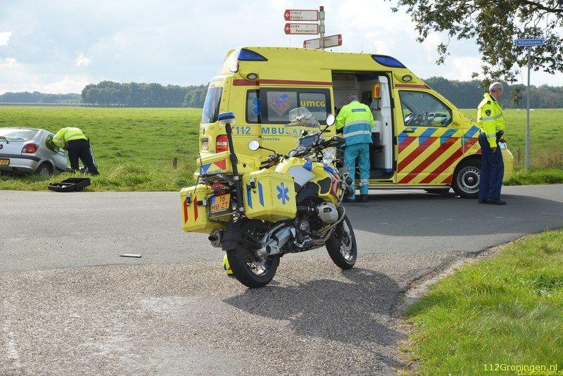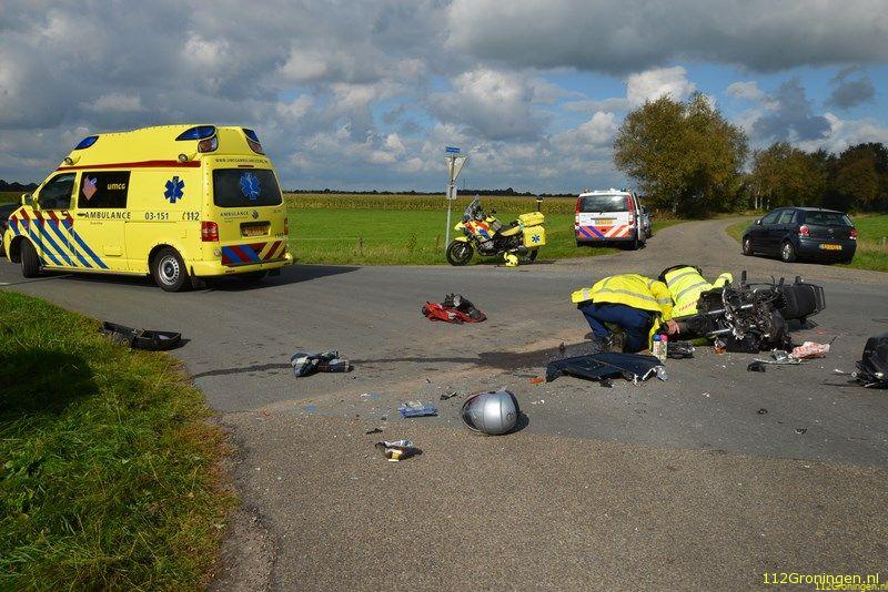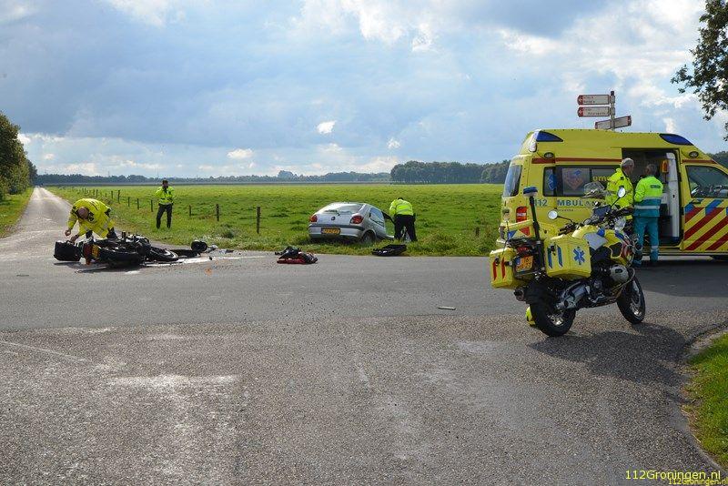 De auto werd bestuurd door een 75-jarige man uit Groningen. De motorrijder is met onbekend letsel naar het ziekenhuis in Groningen vervoerd. De toedracht van het ongeval is nog onbeken