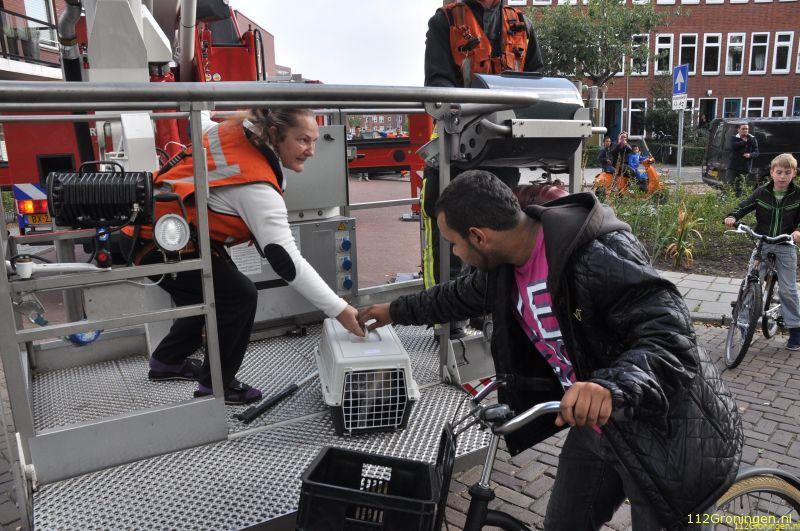 De eigenaresse heeft rond drie uur de brandweer gebeld. Met een hoogwerker en de eigenaresse is de kat uit de boom gehaald. De vrouw was helemaal gelukkig en dankte de behulpzame brandweer.