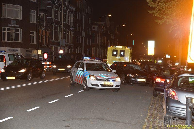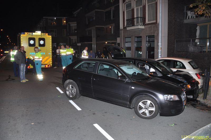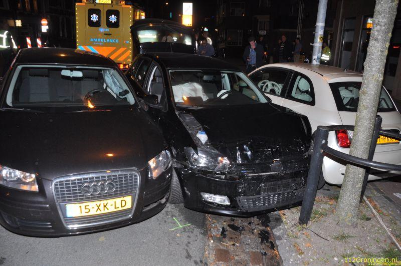 Groningen - Dinsdagavond om 19:30 uur een ongeval op de hoek Rabenhauptstraat/ Hereweg. Een burgerauto van de politie zat achter een inbreker aan en ze gingen een auto inhalen, dat lukte, maar op dat moment keerde een andere vrouw met een Audi net op de weg.