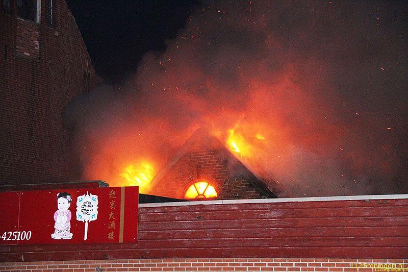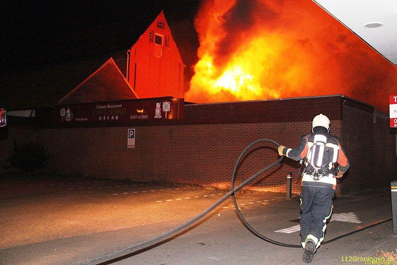 De brandweer kon door de inzet van twee tankautospuiten en een hoogwerker voorkomen dat het vuur oversloeg naar een naastgelegen Chinees restaurant.