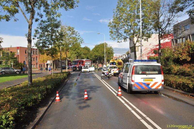 Groningen - Donderdagmorgen om 10:40 uur was er een vermoedelijke kop/staart ongeval op de Friesestraatweg/ Van Goghstraat. 1 auto zou afslaan, de ander botste erop.